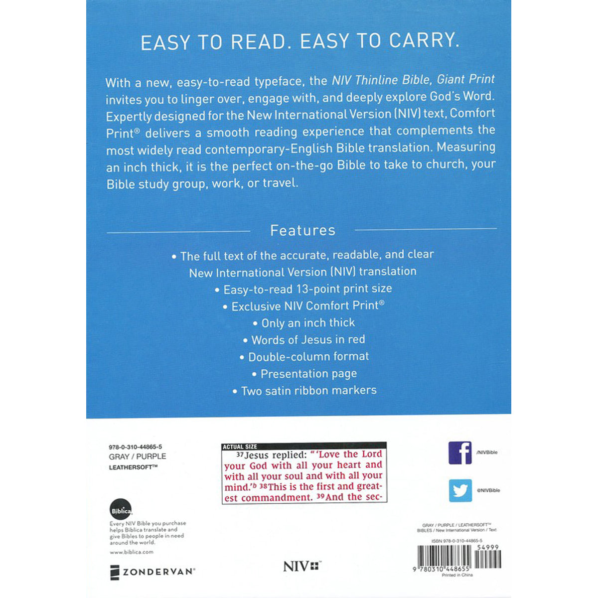 NIV Thinline Bible Giant Print Purple (Comfort Print)(Imitation Leather)