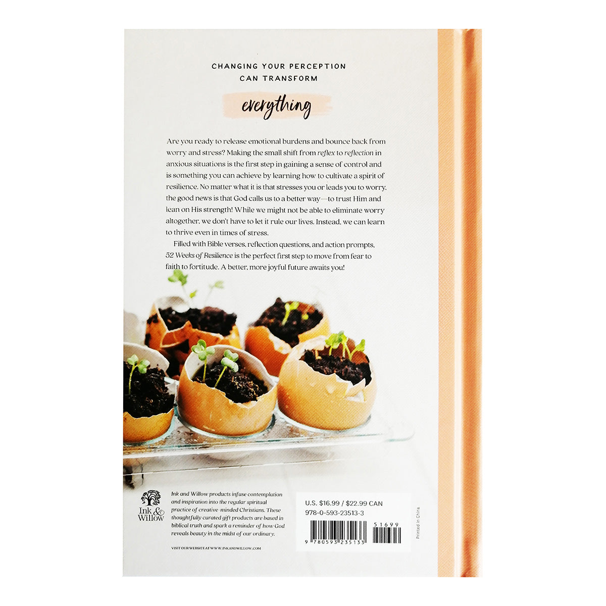 Infuse spirituality and peace into your daily life with this beautiful interactive journal that offers a simple way to lower stress and rediscover rest. Don't worry. It's easy to say these words because we know worrying doesn't accomplish anything, but when we're faced with our own uncertainties, worry is usually our first response. Drawing from biblical promises and wisdom, 52 Weeks of Resilience offers tried-and-true ways to let go of anxiety and live in peace and freedom. As you meditate on Scripture, reflect through journaling, and apply simple challenges to your every day, you will learn to intentionally: Choose gratitude and joy over worry without waiting for perfect circumstances Create a habit of prayer so you may find peace in surrendering your fears and worries to God Practice a spirit of thoughtfulness as you shift your instinctual responses from fear and disappointment to resilience and confidence Follow simple, practical action steps as you strive to capture every thought and replace them with truth On your journey toward resilience in the face of stress and life’s trials, you will experience freedom, peace of mind, and true contentment. Because even in times of stress and worry, you can still take control. You don’t have to let it rule your life. Instead, you can learn to thrive.