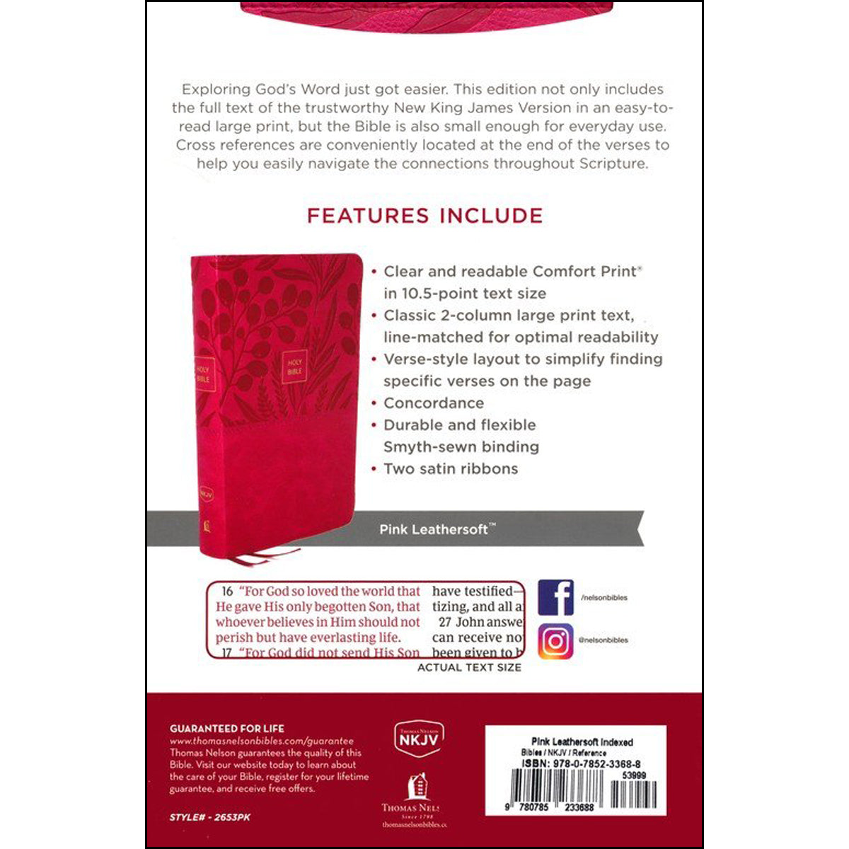 NKJV End Of Verse Personal Size Ref Bible Large Print Indexed Pink (Comfort Print)(Imitation Leather