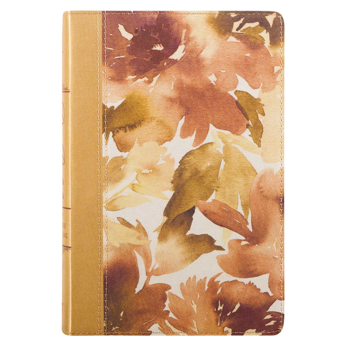 NLV Roesbruin & Goud Linne Standaard Bybel Met Duimgrepe