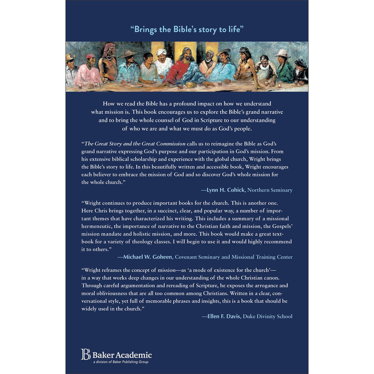 Highly regarded biblical scholar and speaker Christopher Wright shows us that how we read the Bible has a profound impact on how we understand what mission is. According to Wright, "People read (and preach) the Bible in tiny bits and pieces, for its promises or rules or doctrines, and fail to take it . . . as the true story of the universe, past, present, and future, within the plan and purposes of God--as the true story of the universe, past, present, and future, within the plan and purposes of God--a story in which we are called to participate as coworkers with God." Wright encourages us to explore the Bible's grand narrative and to bring the whole counsel of God in Scripture to our understanding of who we are and what we must do as God's people. He helps us understand mission in its broadest sense, including our creational responsibilities. Wright's goal is to get us excited about the dramatic vista of the whole Bible and to help us understand the breadth and depth of missional engagement that we are called to live as actors in that drama.