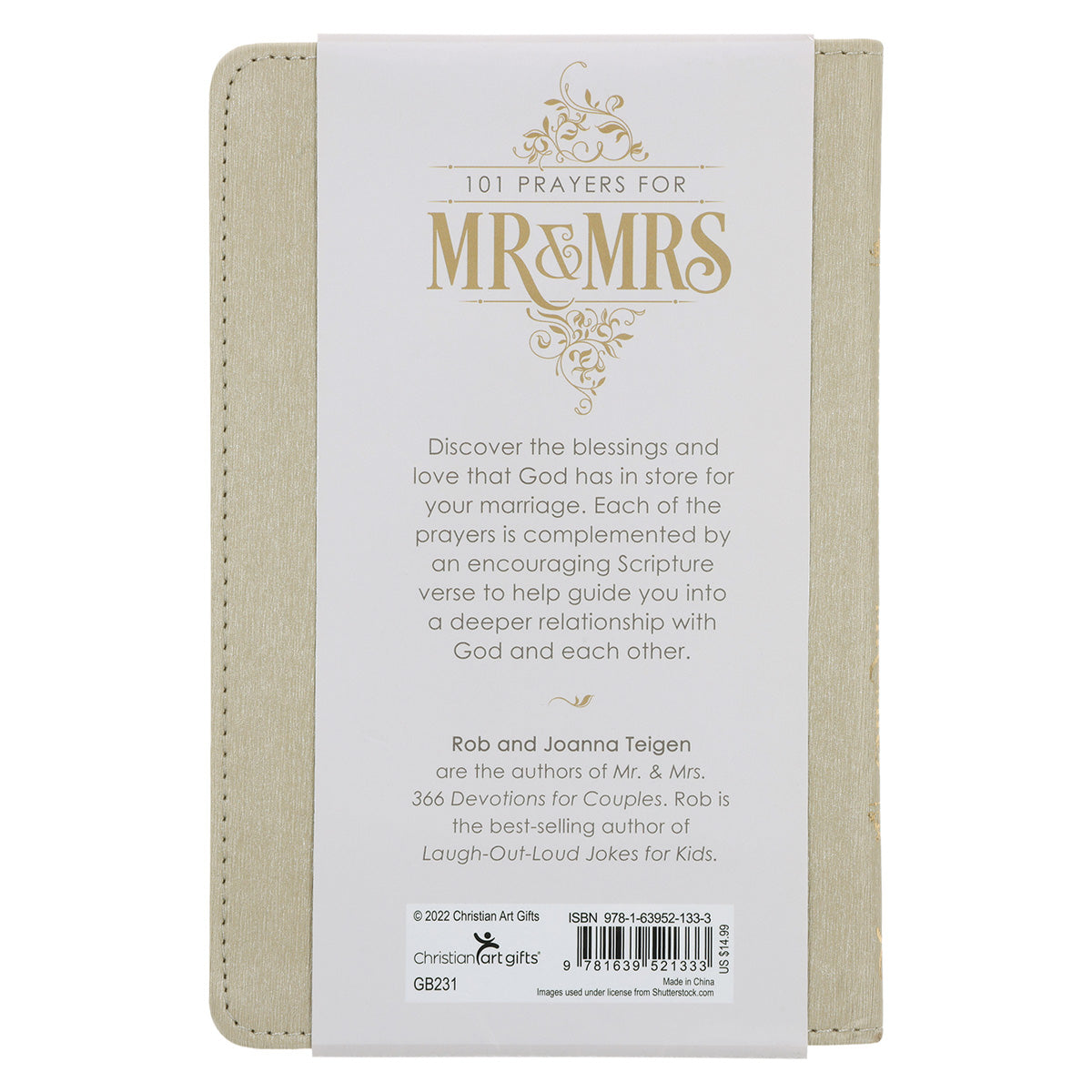 Spending time together with God in prayer is vital to a strong and happy marriage, and 101 Prayers for Mr. & Mrs. Gold Faux Leather Prayer Book pairs rich passages of Scripture with unique prayers to encourage every Christ-centered marriage.