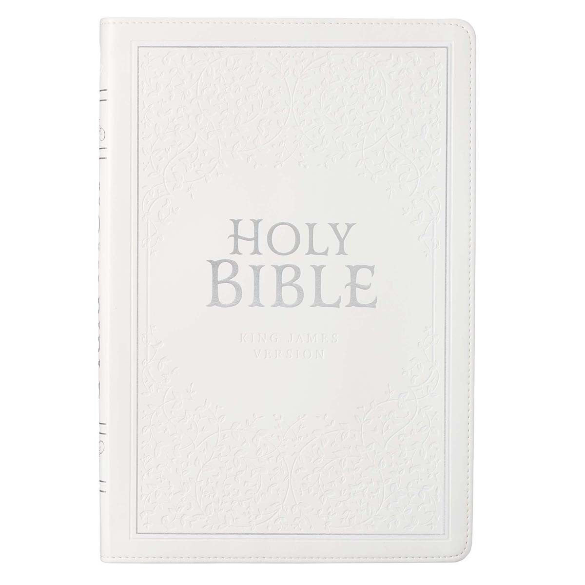 KJV White Faux Leather Thinline Large Print Bible With Thumb Indexing